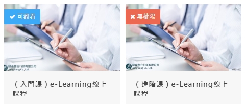 - 課程『可觀看』標籤:前台影片根據每個會員的觀看權限於影片左上方出現是否可觀看標籤 。