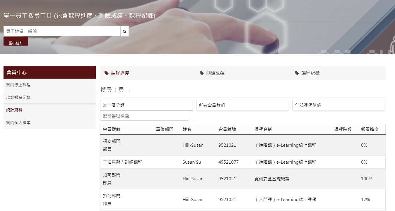 顯示此會員所有課程,包含此會員群組所屬的課程也會列在此處