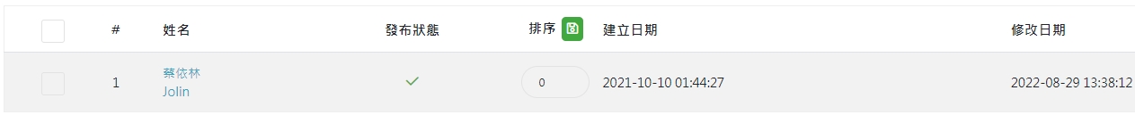 發布狀態為綠色勾勾表示發布此教師資料於前台並可設定為課程授課教師