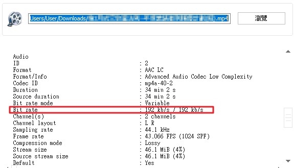 2.請確認原檔影片格式的編碼速率(Bit Rate)設定值正確