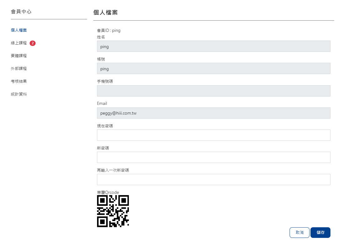 - 線上課程/實體課程 : 皆顯示自己報名的課程