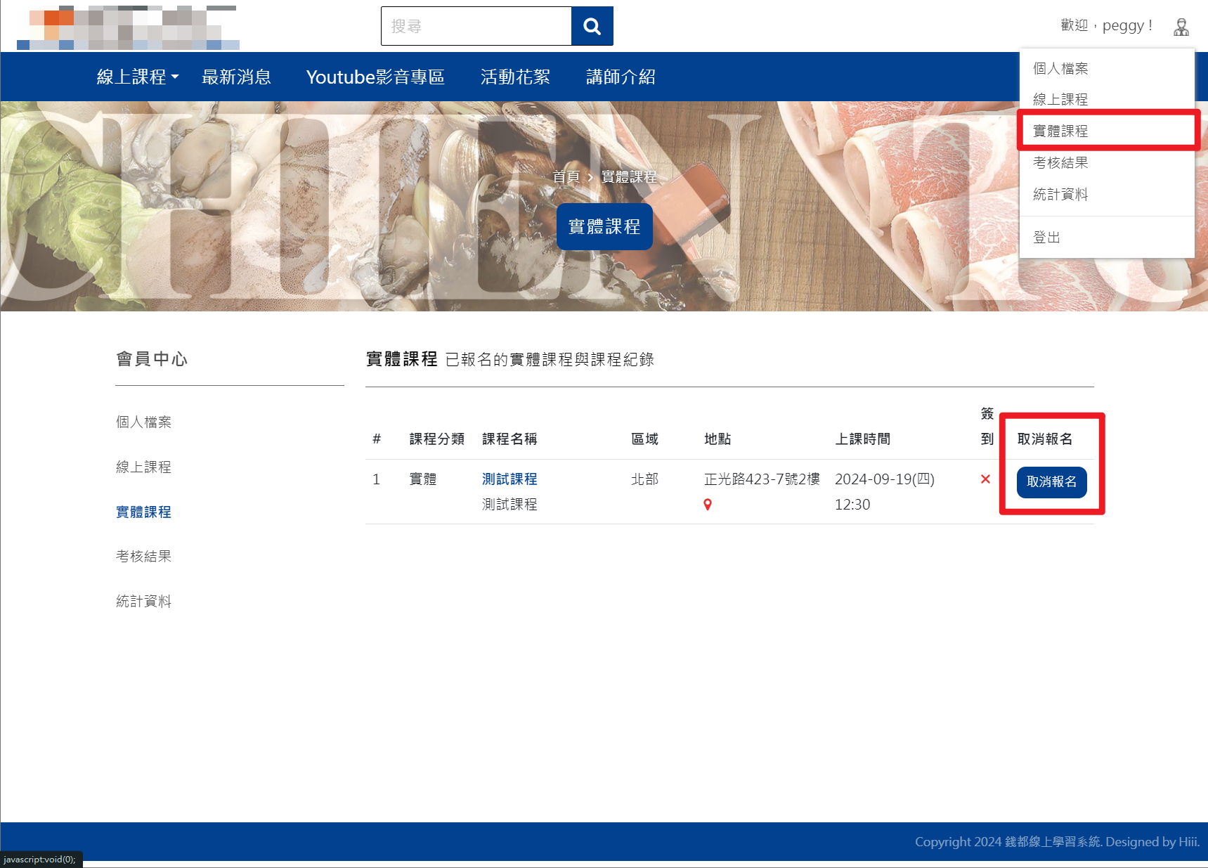 2.會員中心>實體課程